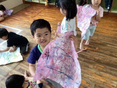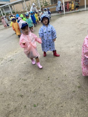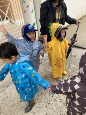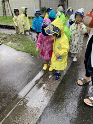 【年少】あめふり散歩、水風船で色水遊び!