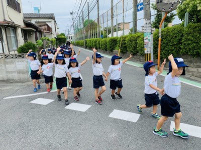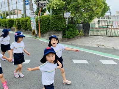 今日は、どんぐり組、年少、年長組の3学年みんなで散歩に行きました!