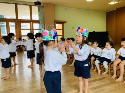 みんなから誕生児さんへ誕生日の歌をプレゼントしました。