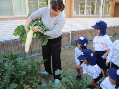 「大っきいねー」「重たい!」と話しながら大根を収穫しました。