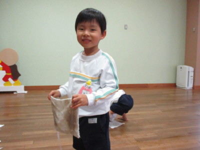 誕生会の最後は、みんなでホールの雑巾がけ。
