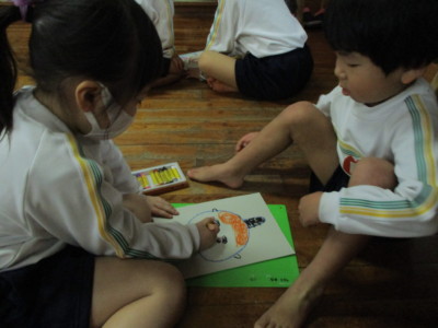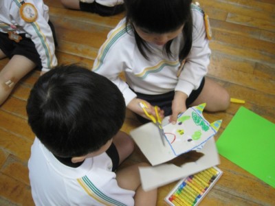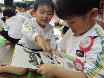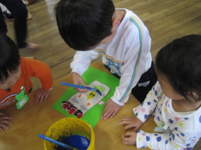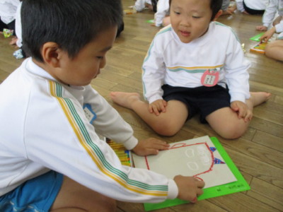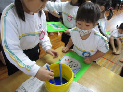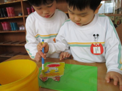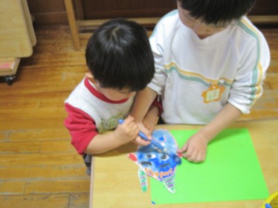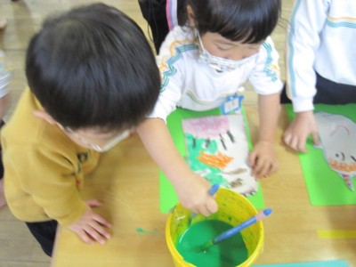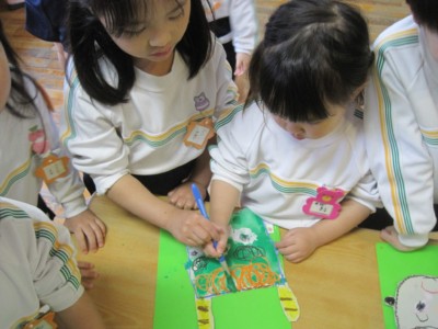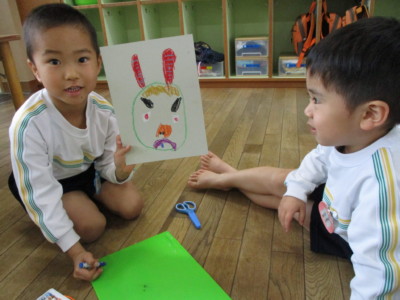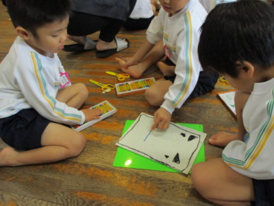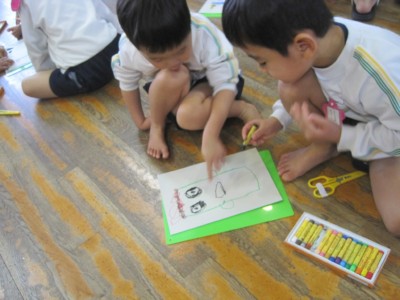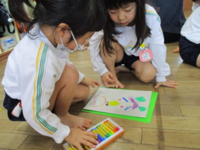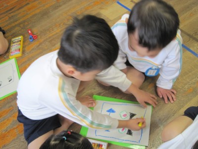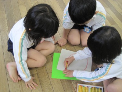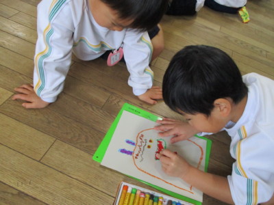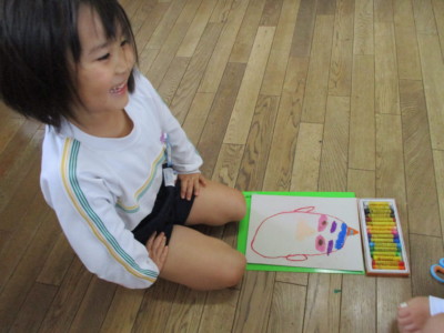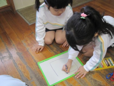 年少にどんな形で、どの色がいいかを聞いて書いていきます!