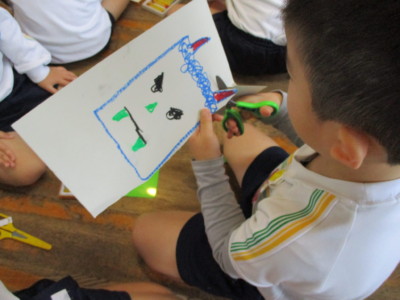 鬼の顔が完成したら、年中さんが顔の形に切り抜いていきます。