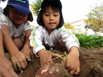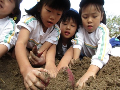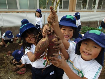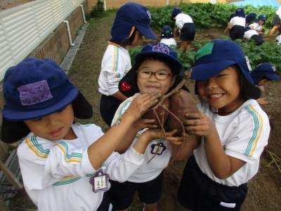 園舎内にある畑で、芋掘りを行いました!