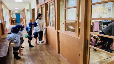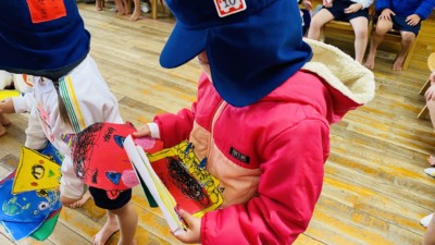 「今日は、年中さんからみんなにプレゼントを持ってきました!」